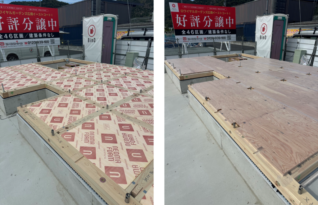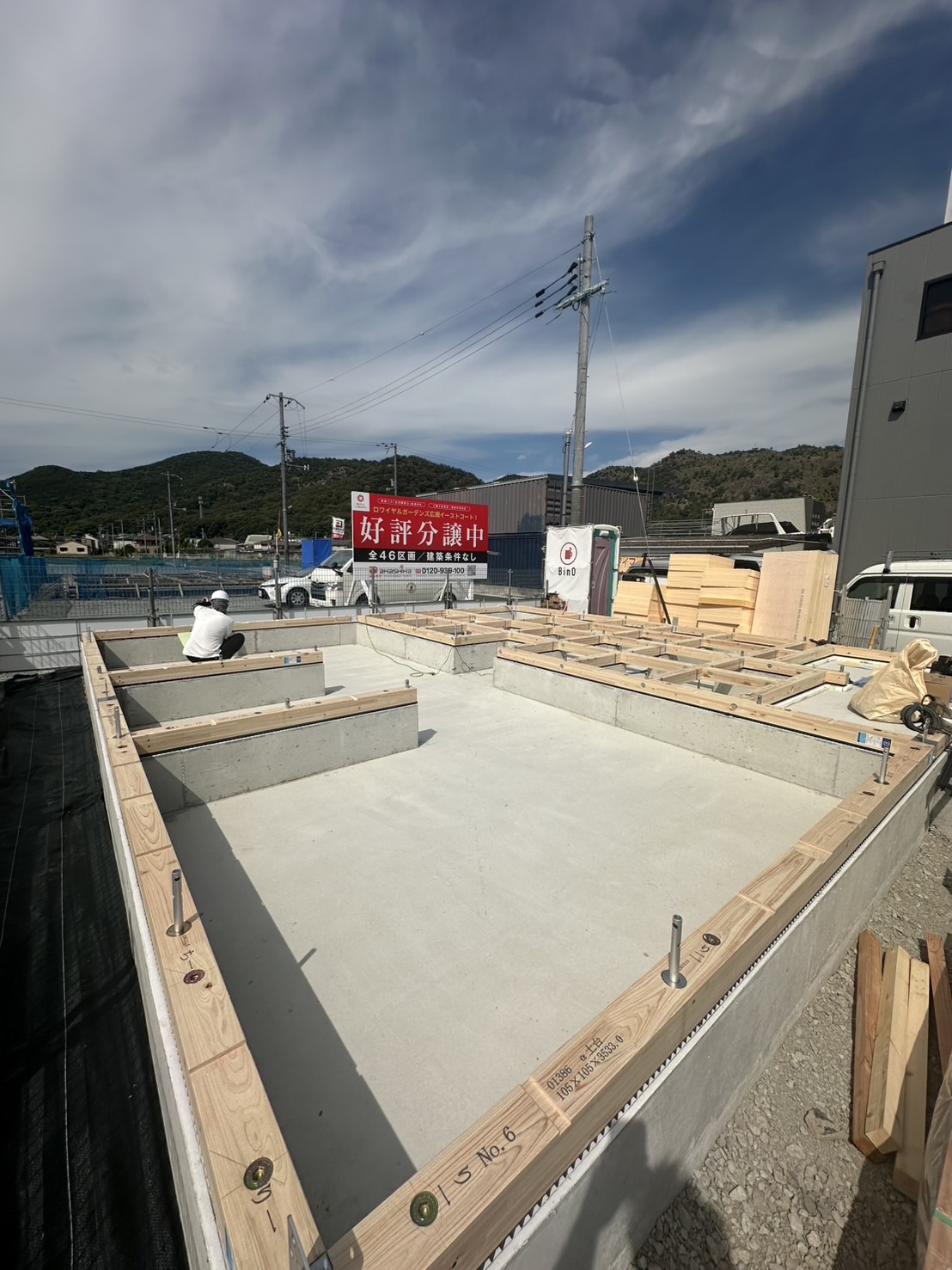 基礎工事が終わると、次は土台敷きの工程に入ります。