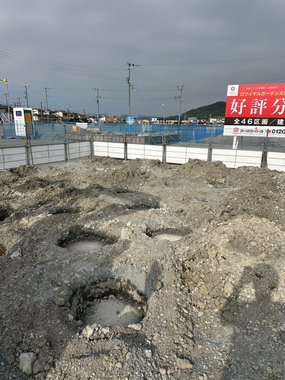 地盤調査の結果、地盤の補強が必要と判断されたため、まず行うのは地盤改良工事です。