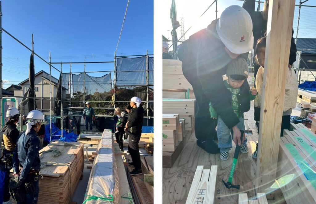 トントン――木槌の響きとともに、ご家族の笑顔が広がり、現場にはあたたかな空気が満ちていきます。