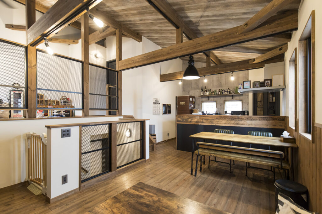 スキップラインの格子にはアイアンメッシュを採用し、無骨でスタイリッシュな男前ヴィンテージの空間を演出。