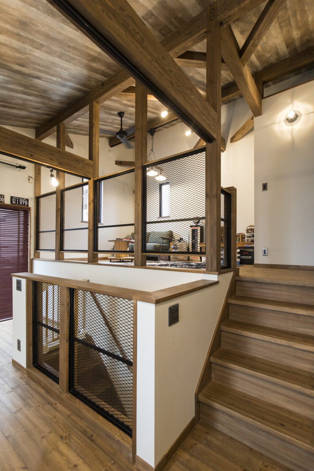 ●男前ヴィンテージが映える、アイアンメッシュ格子の階段