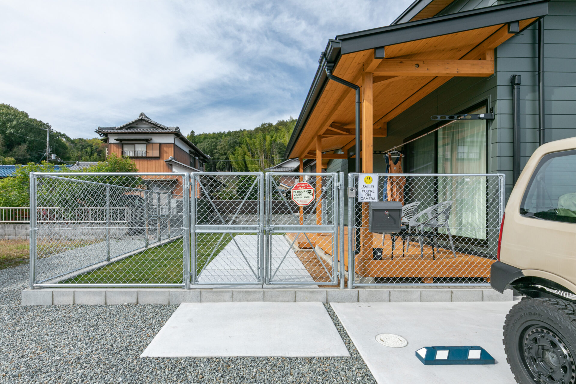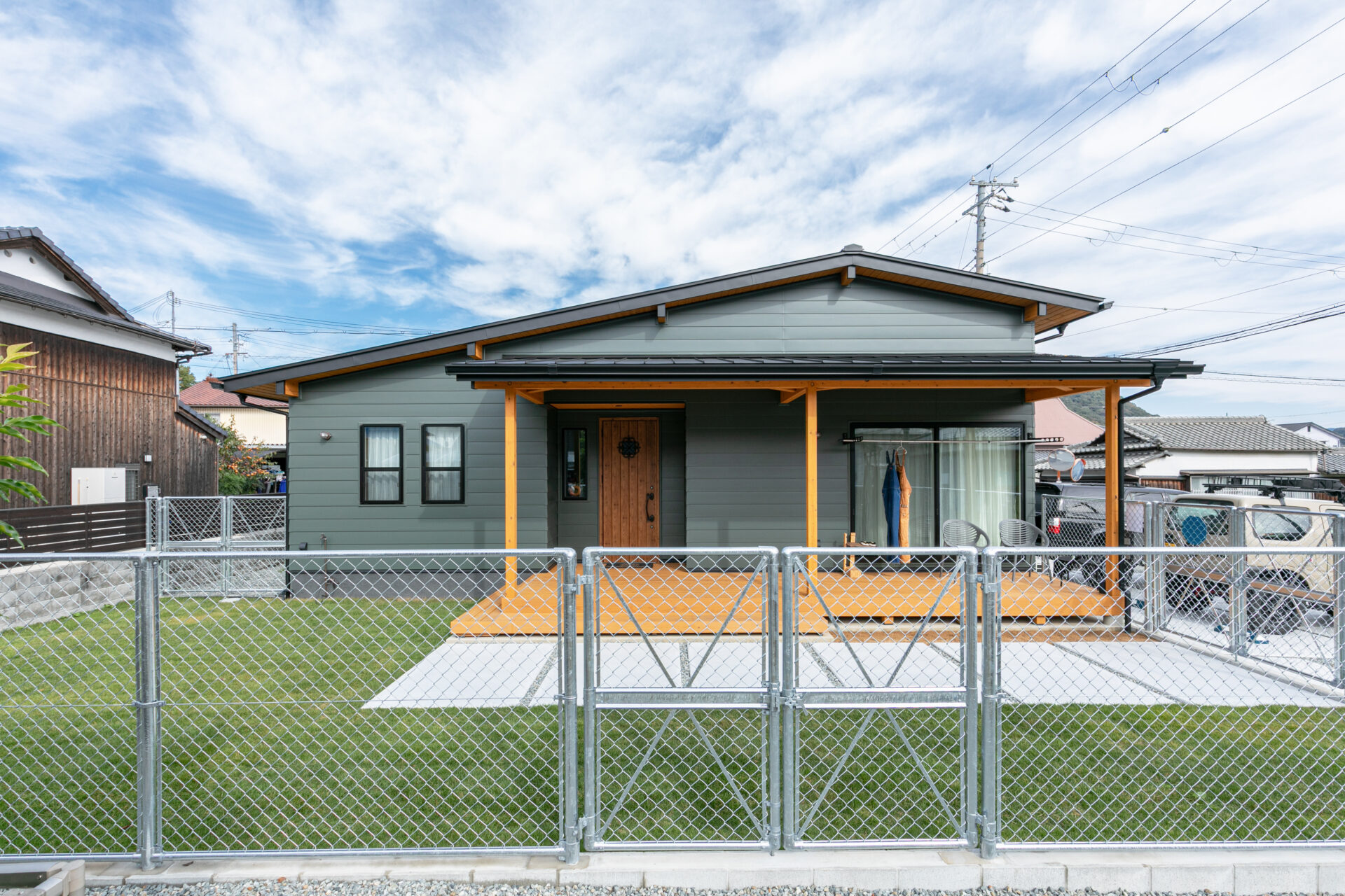 庭の外周は全面にアメリカンフェンスを設置し、開放感を保ちながらもしっかりと区切った設計。