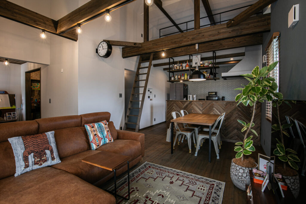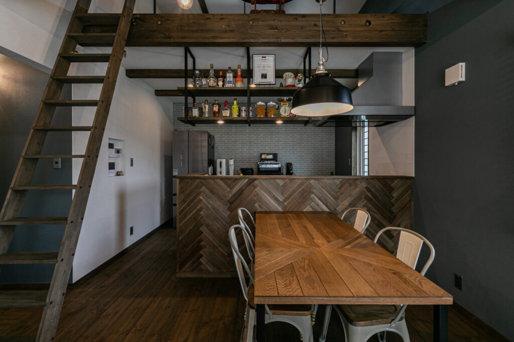 ●古材やアイアンでまとめた、アメリカンテイストの空間