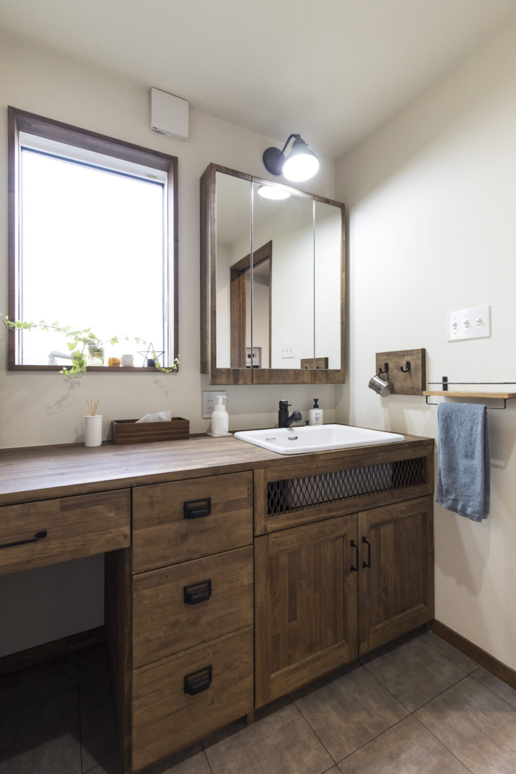 お気に入りの小物を飾れるデザインで、暮らしの中のさりげない彩りを楽しめる場所になっています。