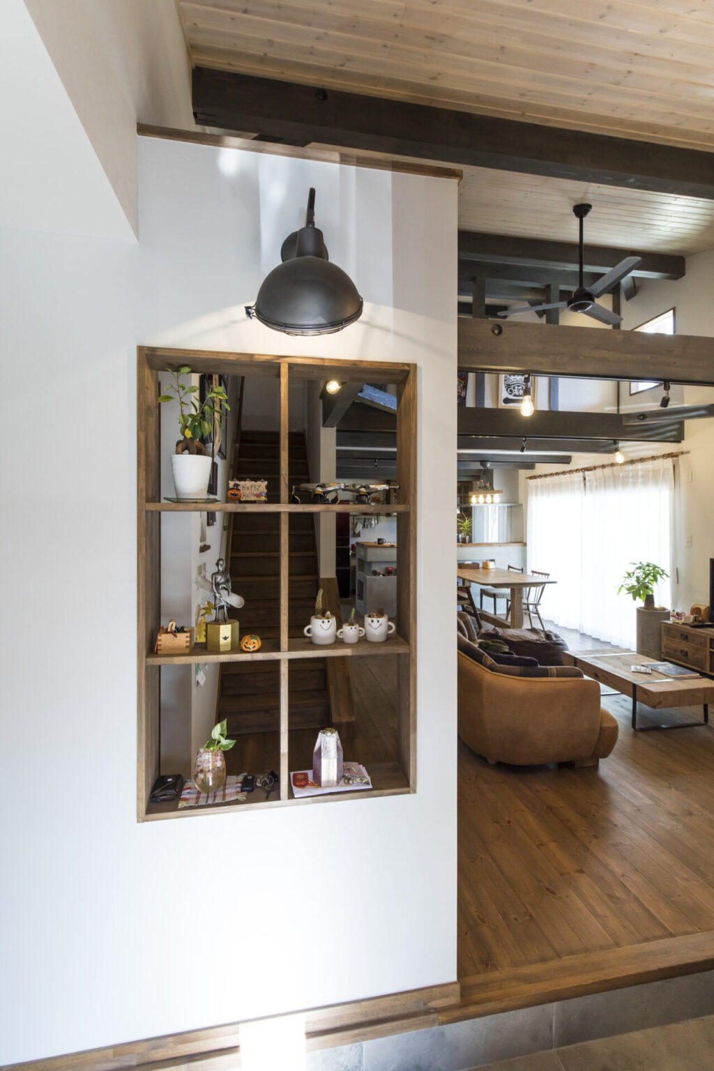 飾り棚も設けられていて、お気に入りの食器や雑貨をセンスよくディスプレイできます。