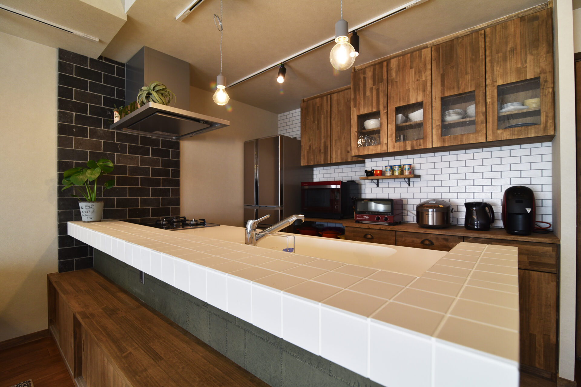 タイルの質感と可愛らしいデザインで、毎日の時間が楽しくなる空間に仕上げました。
