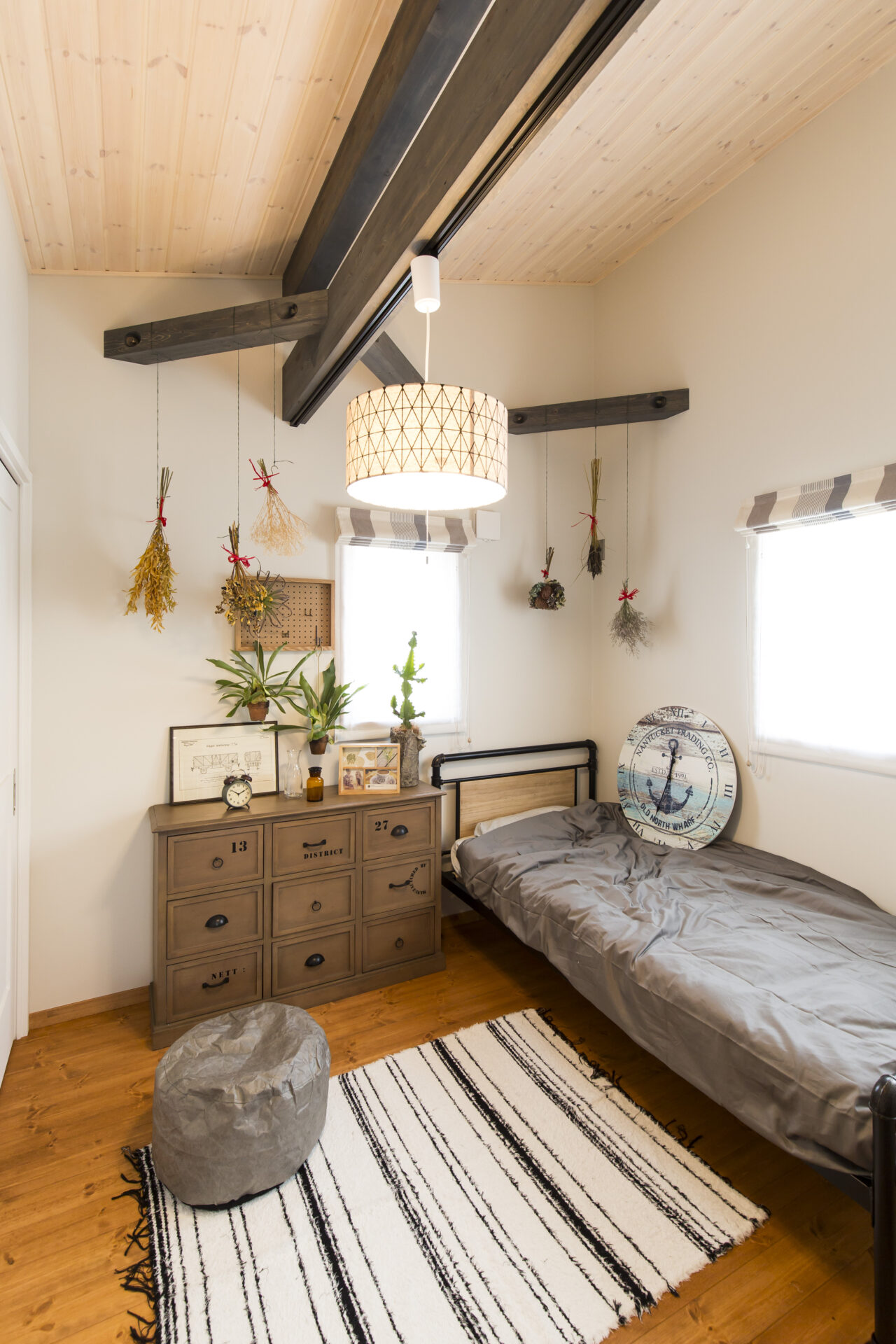 ●勾配天井がのびやかな開放感を生む洋室