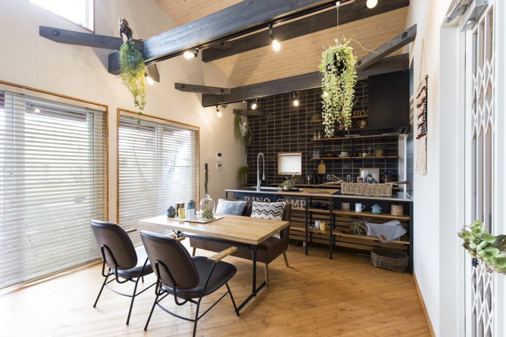 「隠す」のではなく「見せる」ことを愉しむデザインが、ダイニングの吹き抜けやリビングの素材感と見事に溶け合います。