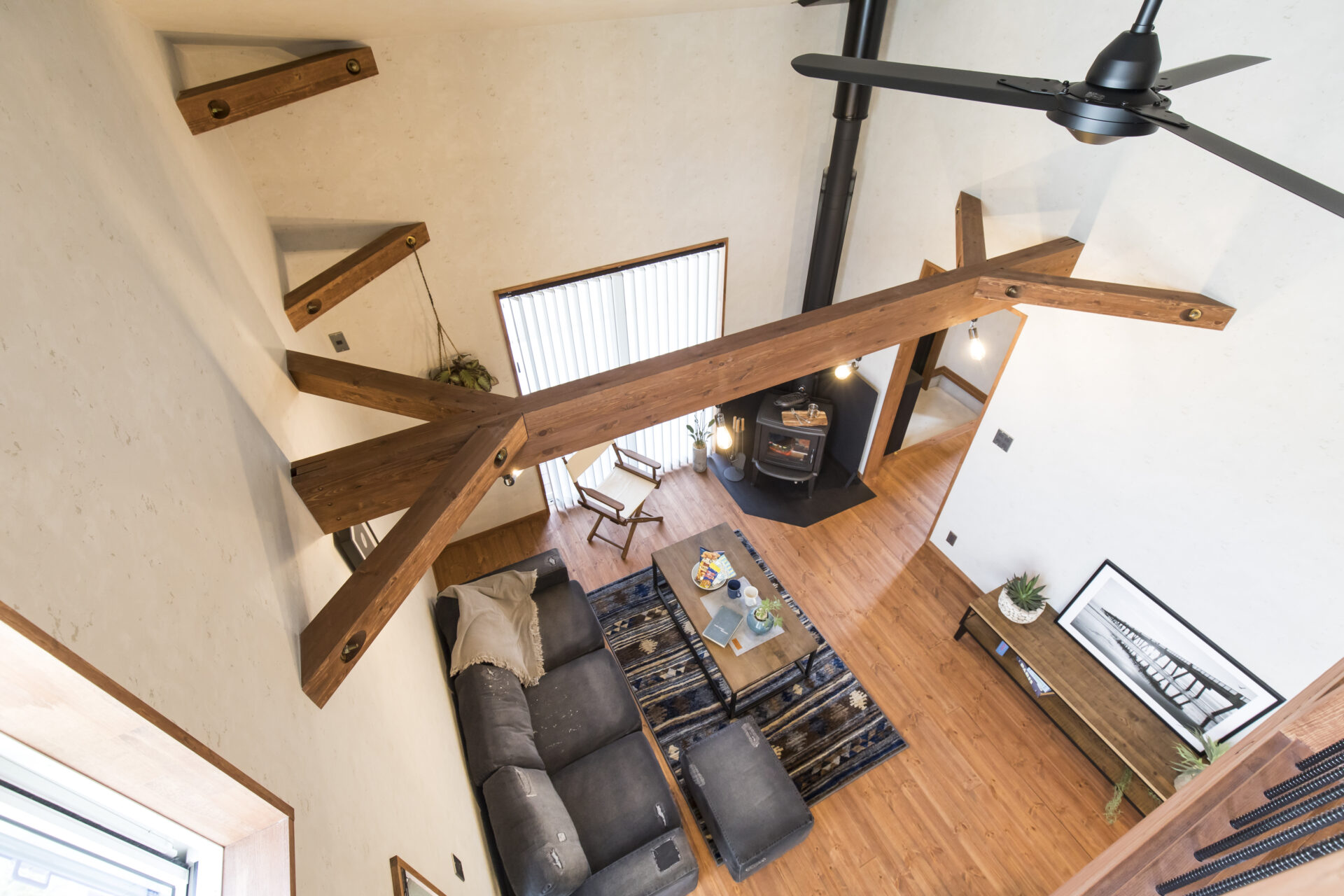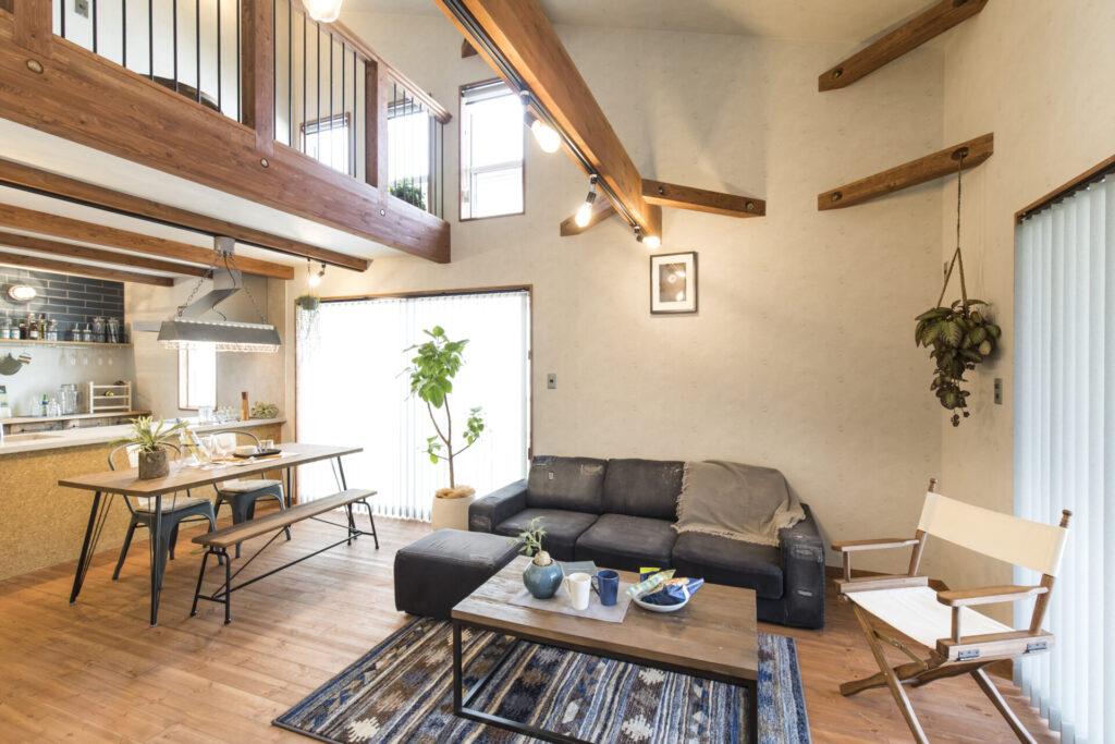 吹き抜けを設けたLDKは、上下階につながる開放感あふれる空間。