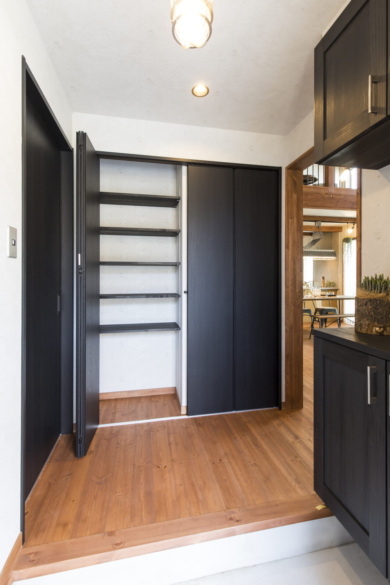 充実した収納を備えた玄関は、靴や日用品をすっきりと収められる機能的な空間。