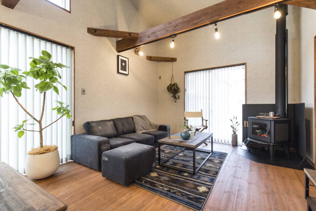 自由な日々に寄り添う 薪ストーブと素材の家