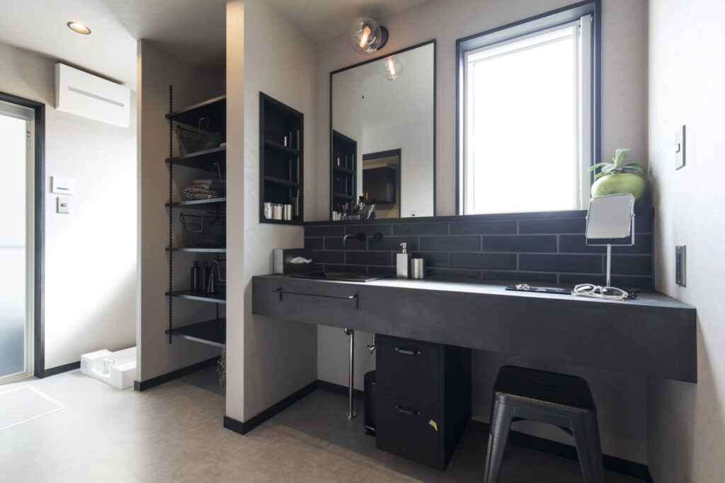 ●ダークトーンでまとめた上質な洗面空間